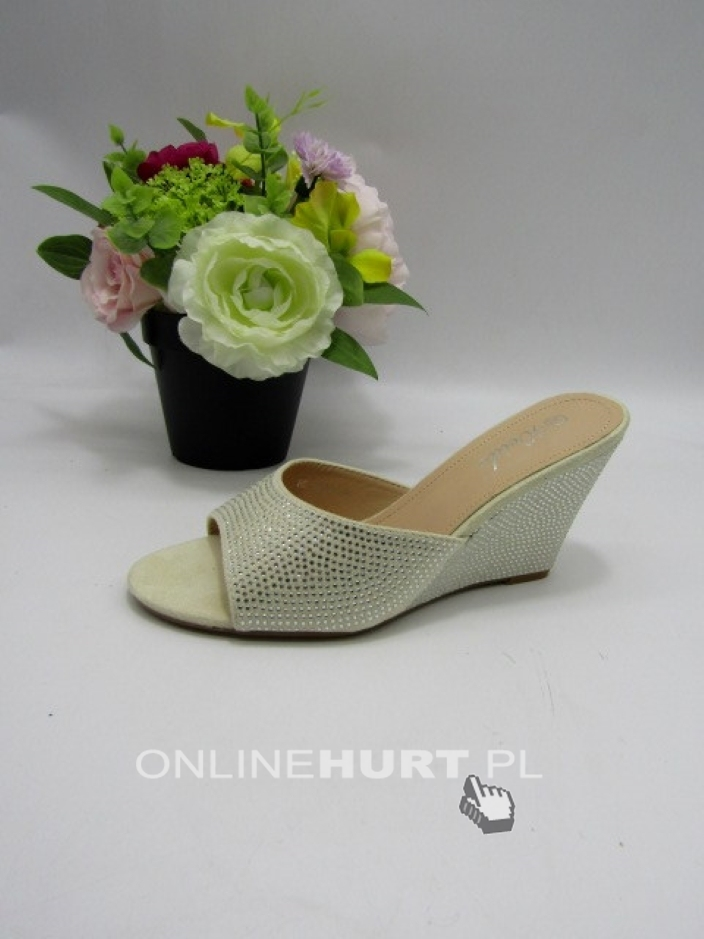 Klapki damskie na koturnie (36-41) B-6003 BEIGE