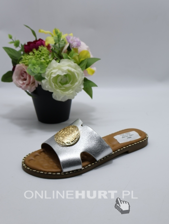 Klapki damskie na płaskim (36-41) L2857 SILVER