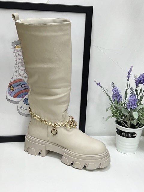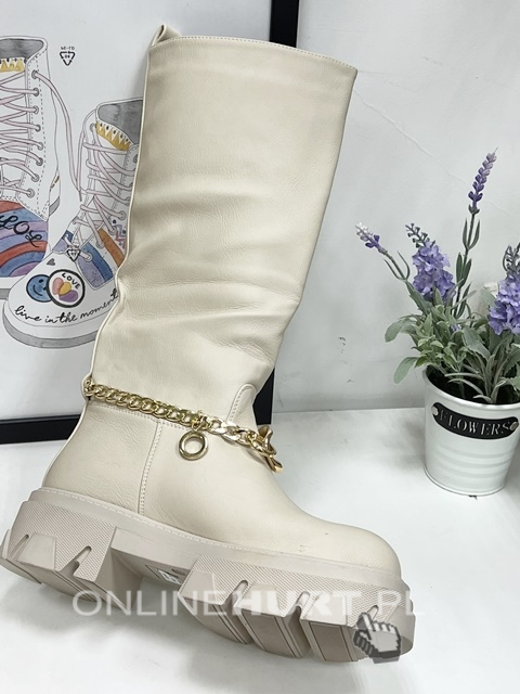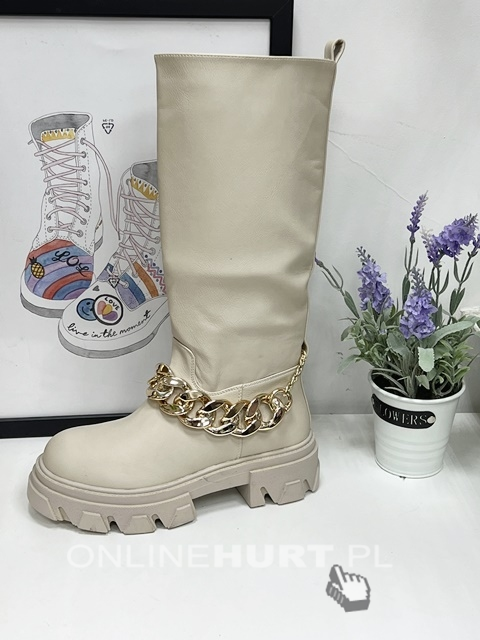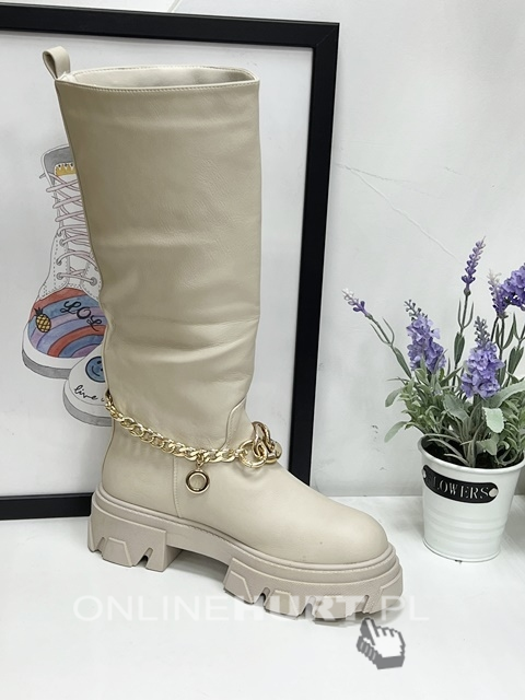Kozaki damskie ocieplane na płaskim (36-41) F07 APRICOT