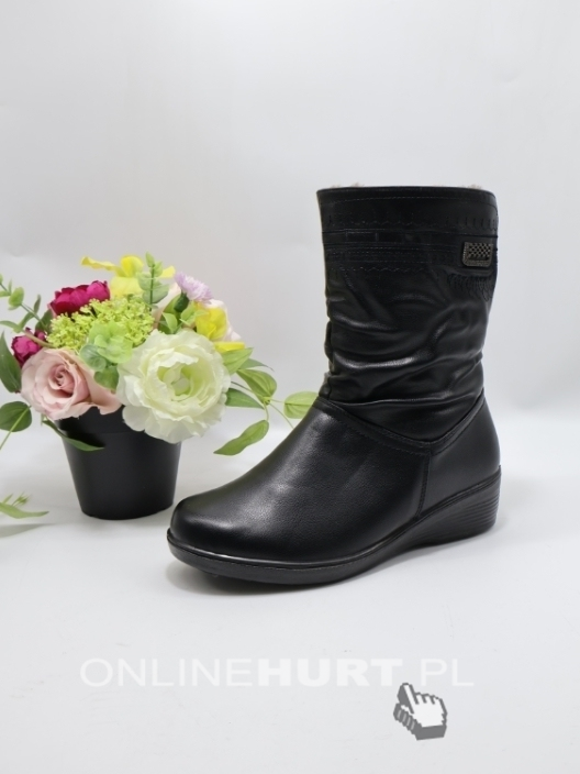 Kozaki damskie ocieplane na płaskim (37-42) 7167 BLACK