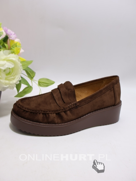 Mokasyny damskie na płaskim (36-41) 77-654 BROWN