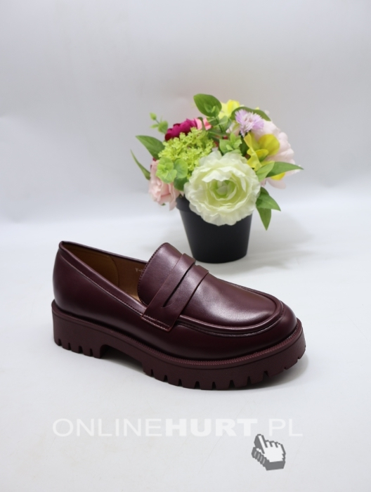Mokasyny damskie na płaskim (36-41) V-917 BORDO