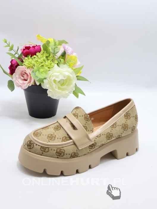 Mokasyny damskie na płaskim (36-41) YDF-40 KHAKI